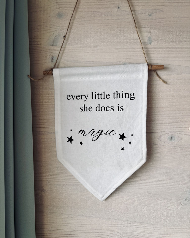 Diese handgenähten Stoffbanner schaffen eine warme, gemütliche Atmosphäre und setzen einen persönlichen Akzent an der Wand, an der Tür oder über dem Bett.