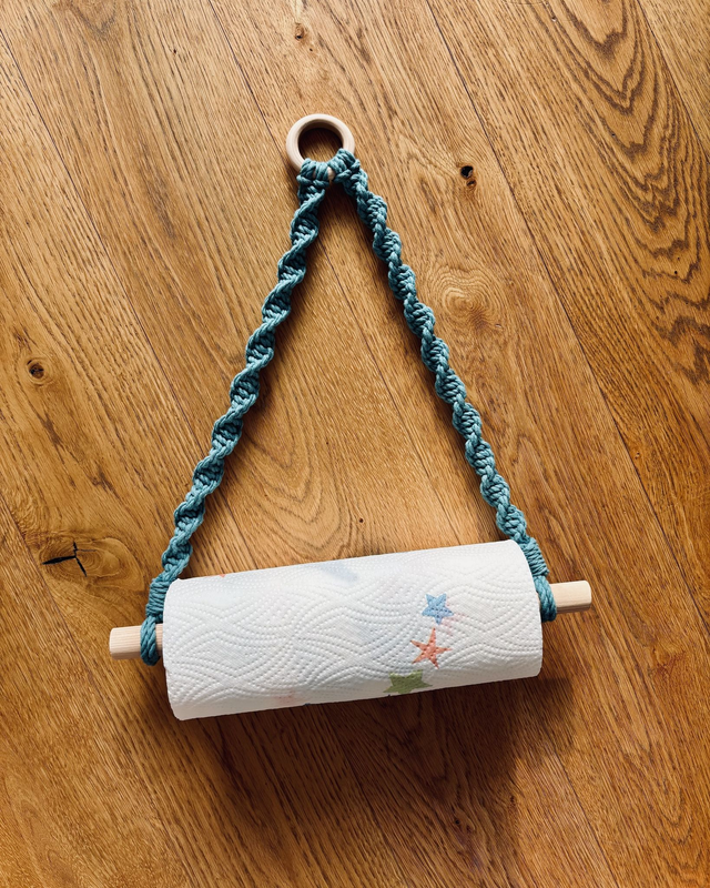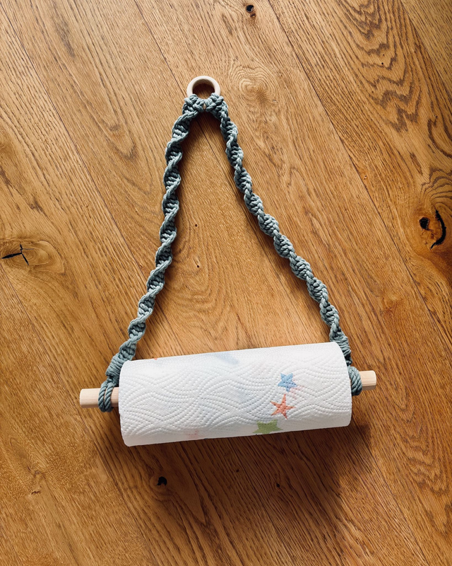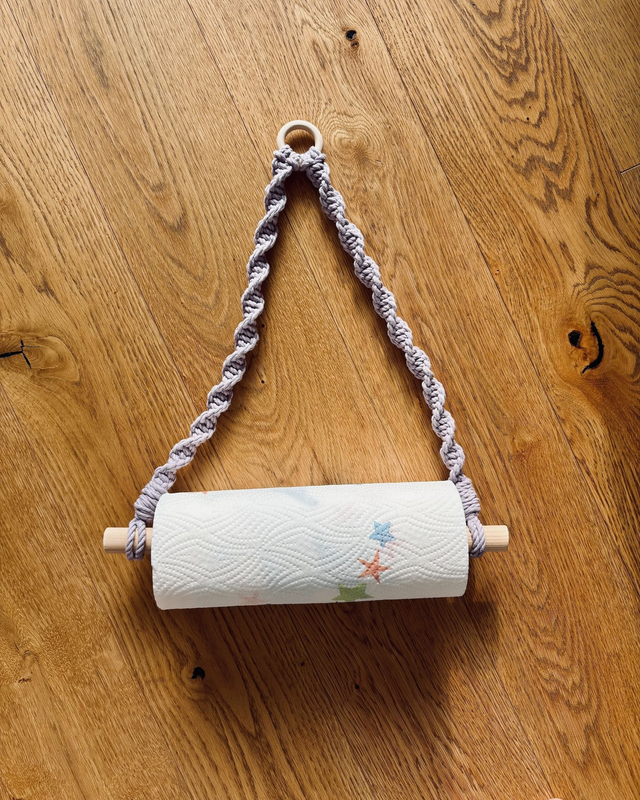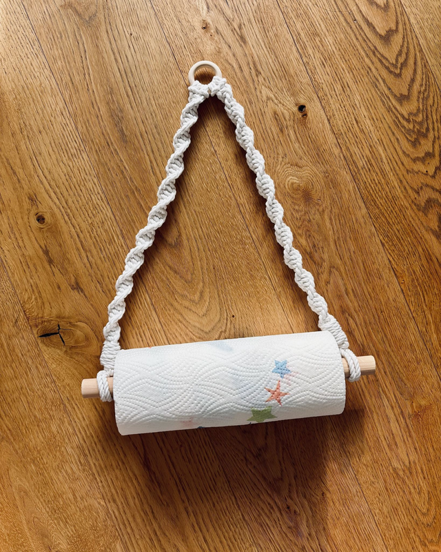 Dieser Makramee-Halter verbindet praktischen Nutzen mit natürlicher, handgemachter Deko. Ideal, um Küchenpapier stilvoll aufzubewahren oder als liebevolles Geschenk für alle, die schöne Details lieben.