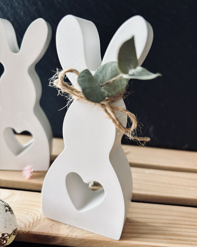 Hopp, Hopp, Hopp – dieser Osterhase wurde mit viel Liebe gegossen und wartet darauf, deine Osterdekoration zu ergänzen. Ein kleiner Hingucker mit grossem Charme.