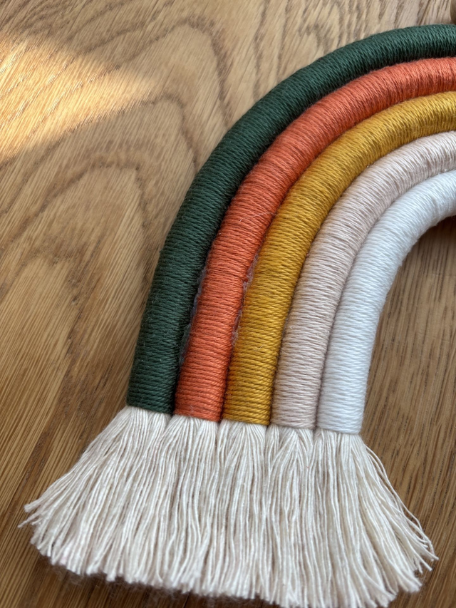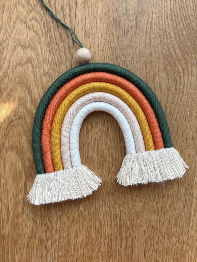 Auf der linken Seite des Regenbogens hat es leichte Heisskleberflecken. Diese können aber bspw. mit einer Holzwolke oder anderen Deko-Elementen abgedeckt werden.
