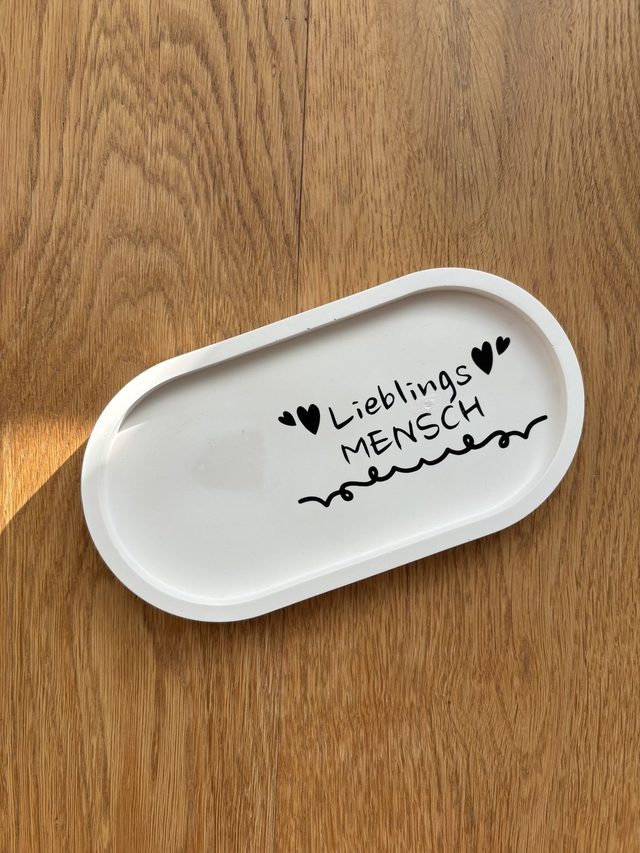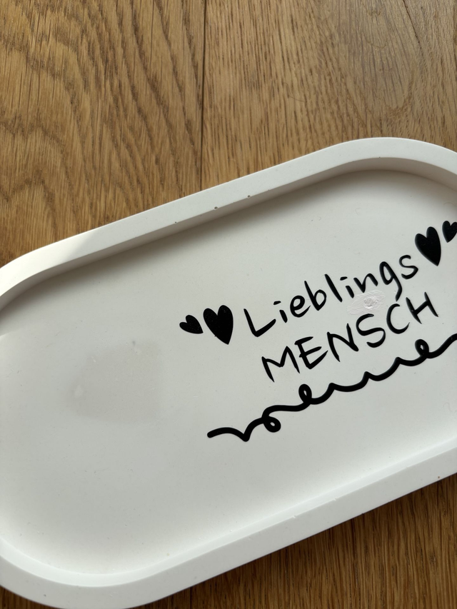 Auf der linken Seite hat es eine Verfärbung (kann bspw. mit einer Kerze abgedeckt werden) und zwischen den Wörtern "Lieblings" und "MENSCH" ist ein kleines Loch, welches mit weisser Farbe korrigiert wurde.